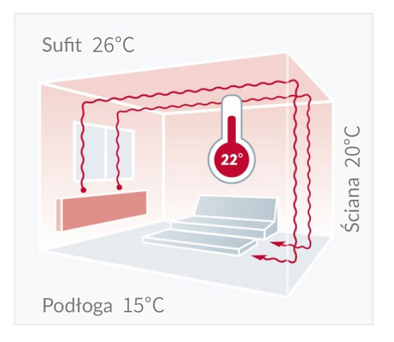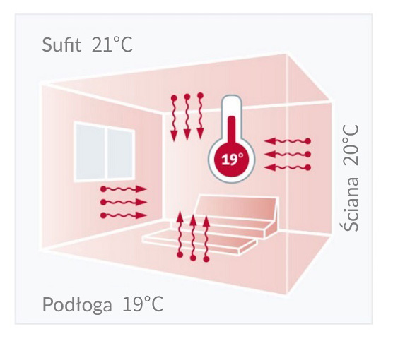 Zdrowe ciepło promieniowania ze ściany, sufitu i podłogi.